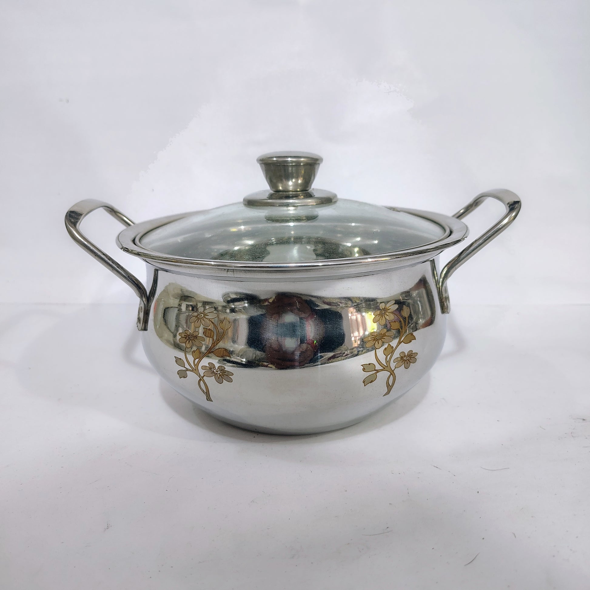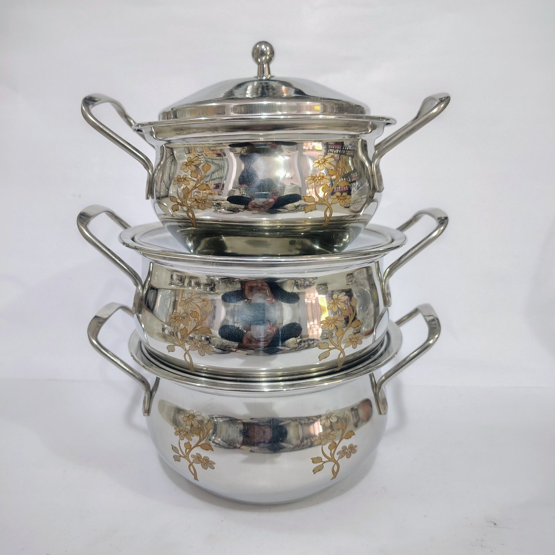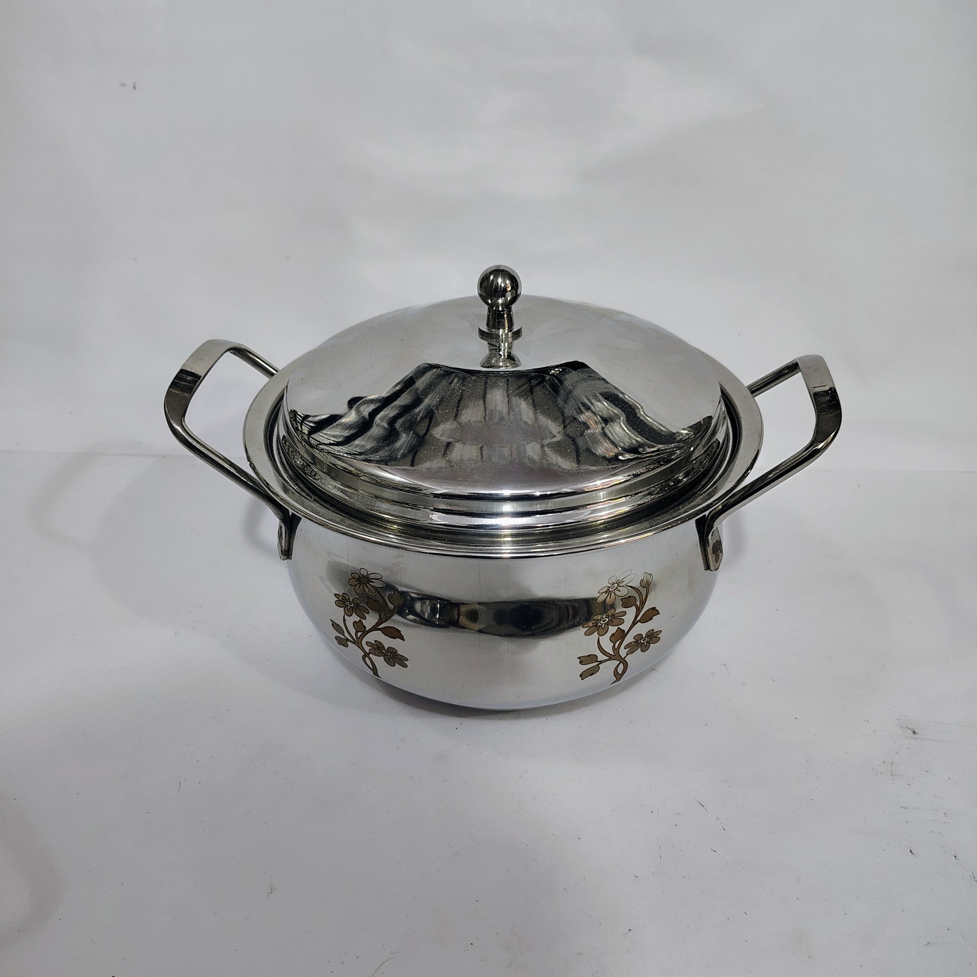 Asha-Stainless Steel body Donga Set of 3 Beautiful Design,One Glass Lid-Heavy Build Quality,Food Serving Donga..