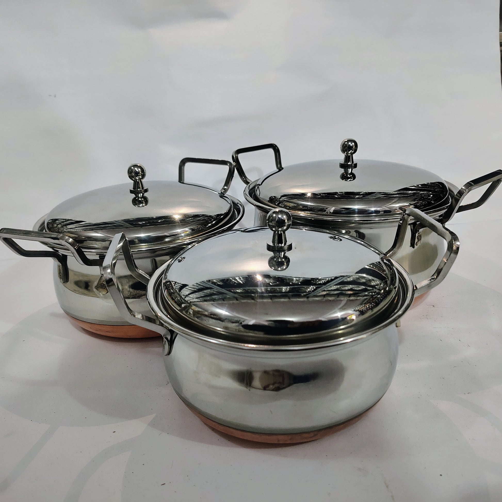 Asha-Stainless Steel body with Copper Bottom Donga Set of 3 at Very Low Price
